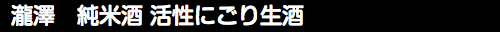 お酒造りが始まって、最初に出てくるのが新酒です。冬から春にかけては、新酒の季節です。まだ熟成が進んでいない、若々しいフレッシュなお酒がお好みの方に!!「活性にごり」は、瓶の中で発酵が進んでいる状態で、しゅわしゅわっとした炭酸感を楽しめ生命力に満ちあふれた味わいは、この時期限定のお酒でです。